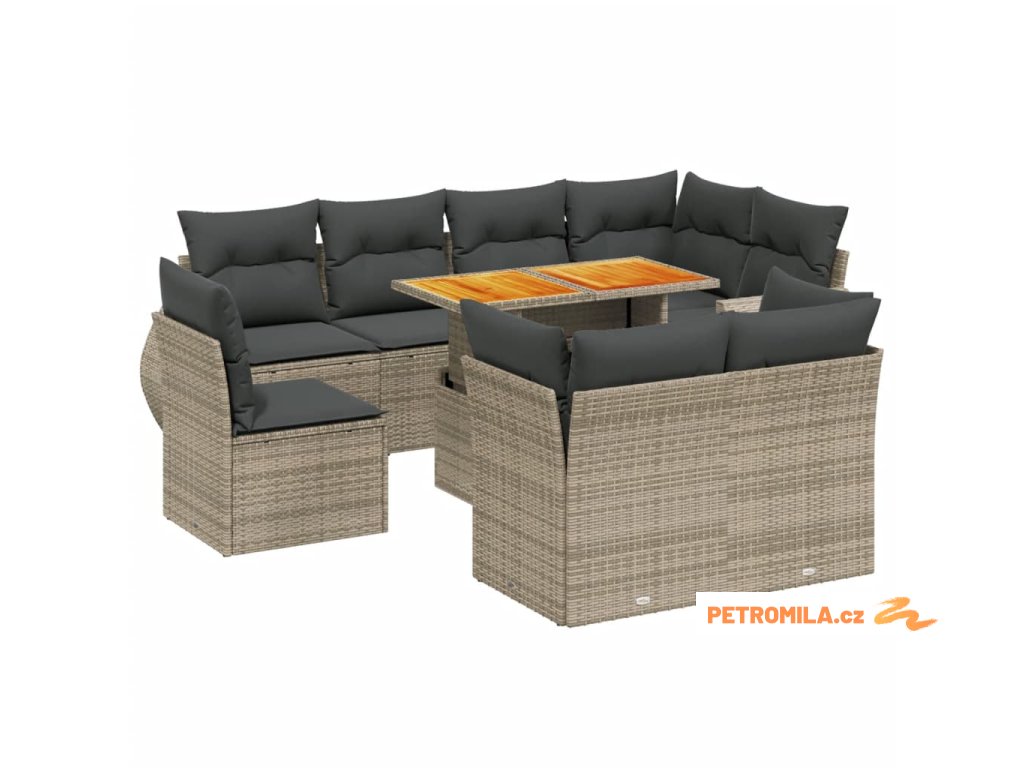 9dílná zahradní sedací souprava s poduškami šedá polyratan
