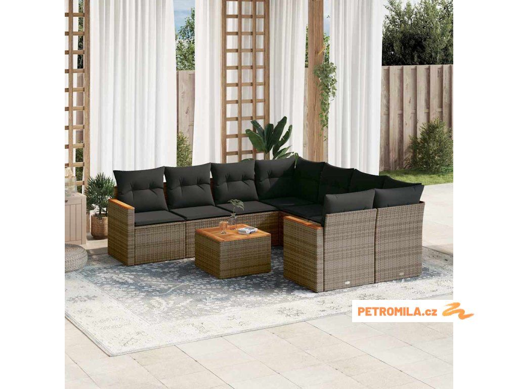 9dílná zahradní sedací souprava s poduškami šedá polyratan