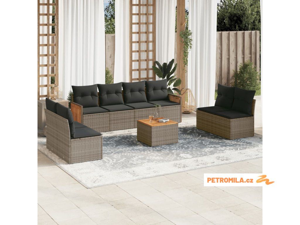 9dílná zahradní sedací souprava s poduškami šedá polyratan