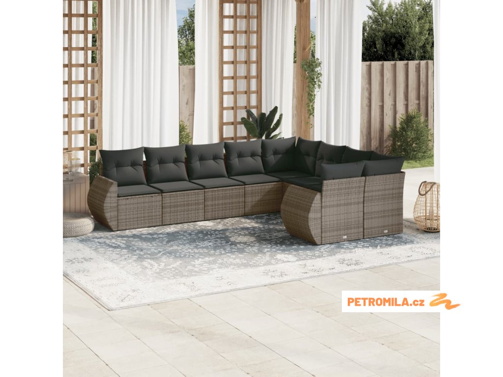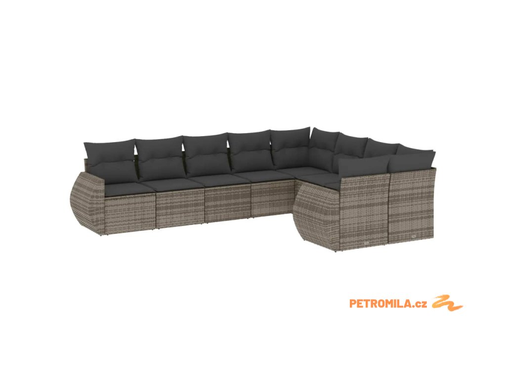 9dílná zahradní sedací souprava s poduškami šedá polyratan