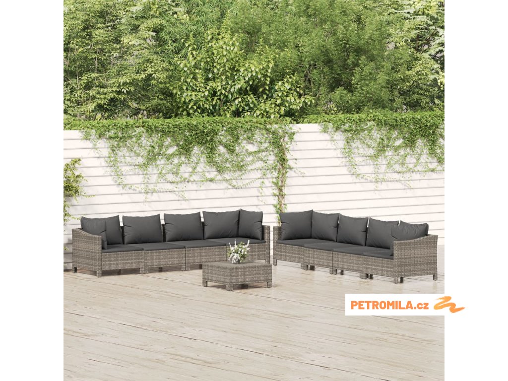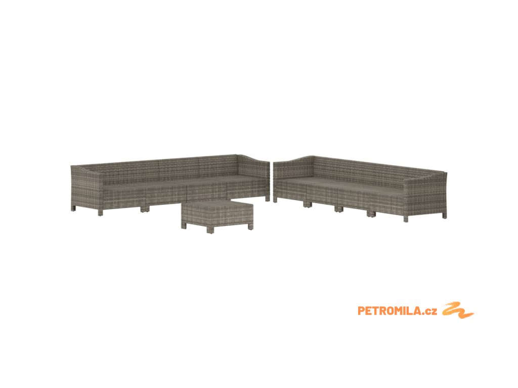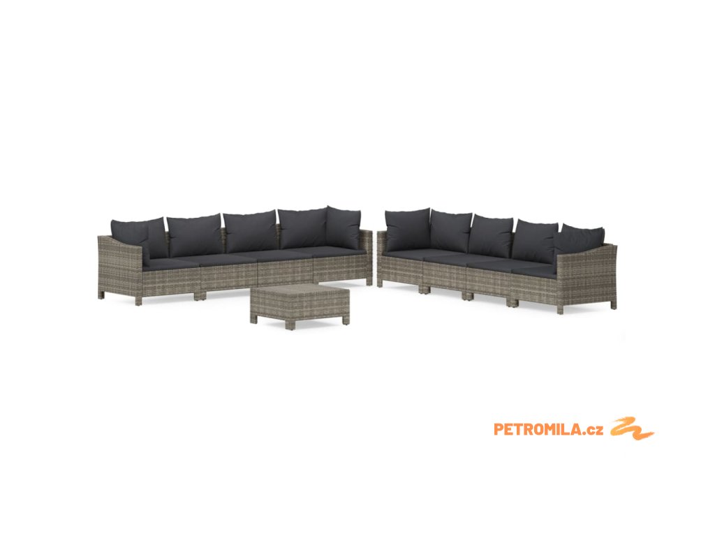 9dílná zahradní sedací souprava s poduškami šedá polyratan