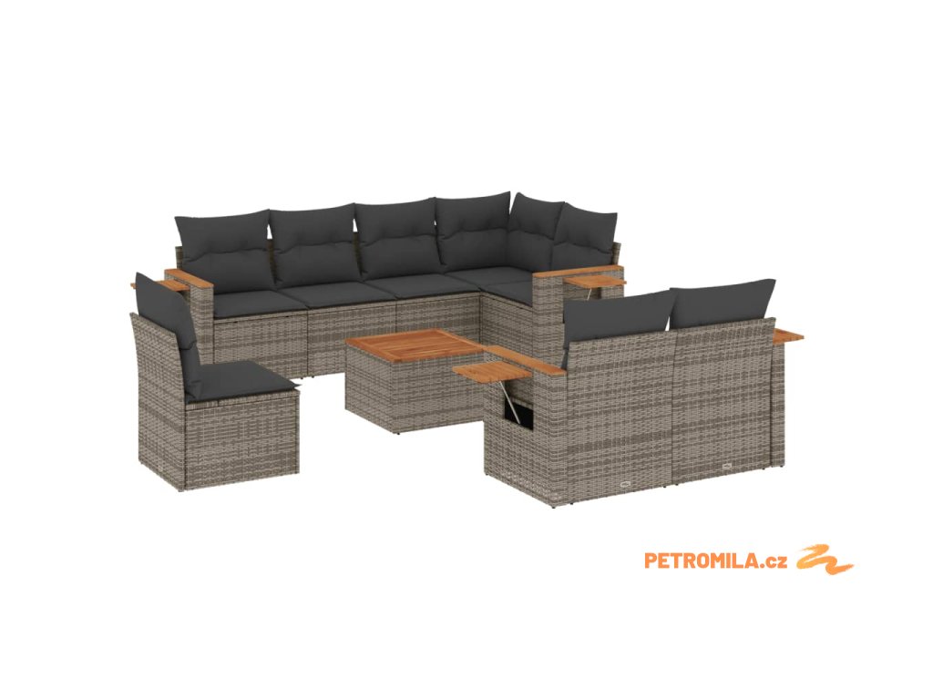 9dílná zahradní sedací souprava s poduškami šedá polyratan