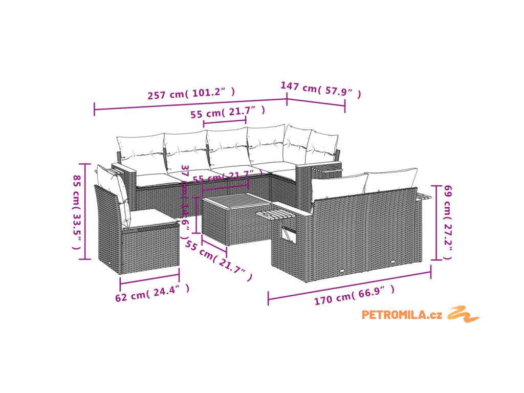 Sada zahradních pohovek s polštářem 9 pcs Béžová Poly ratan