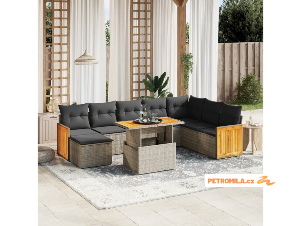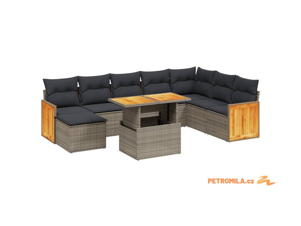 9dílná zahradní sedací souprava s poduškami šedá polyratan