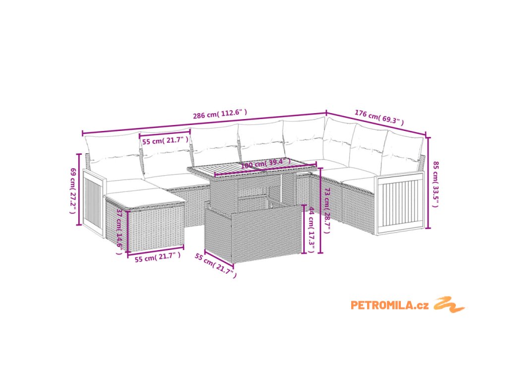 Sada zahradních pohovek s polštářem s úložištěm 8 pcs polyratan