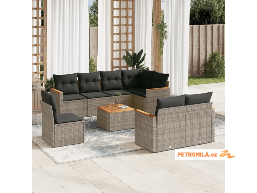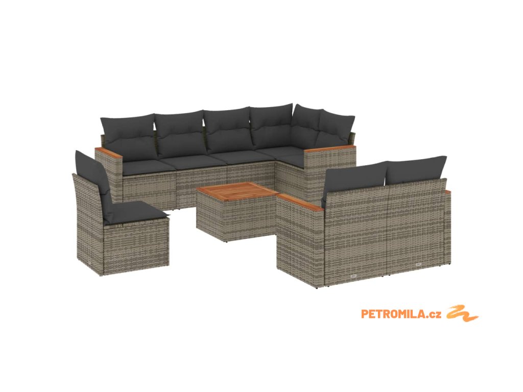 9dílná zahradní sedací souprava s poduškami šedá polyratan