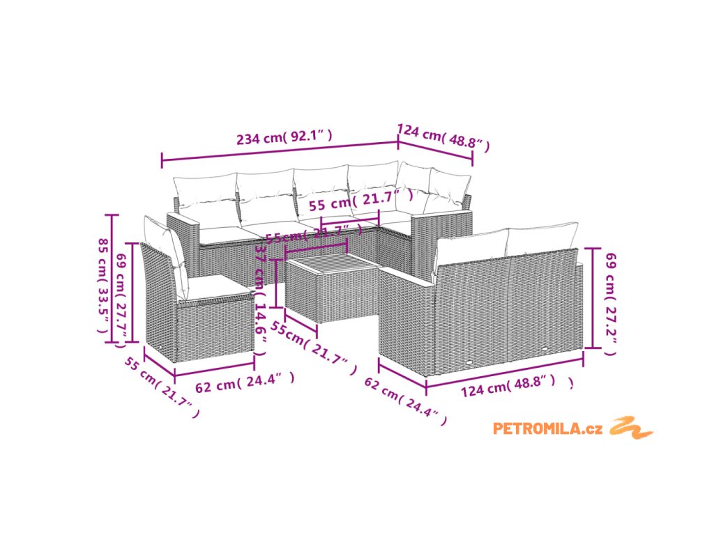 Sada zahradních pohovek s polštářem 9 pcs Béžová Poly ratan