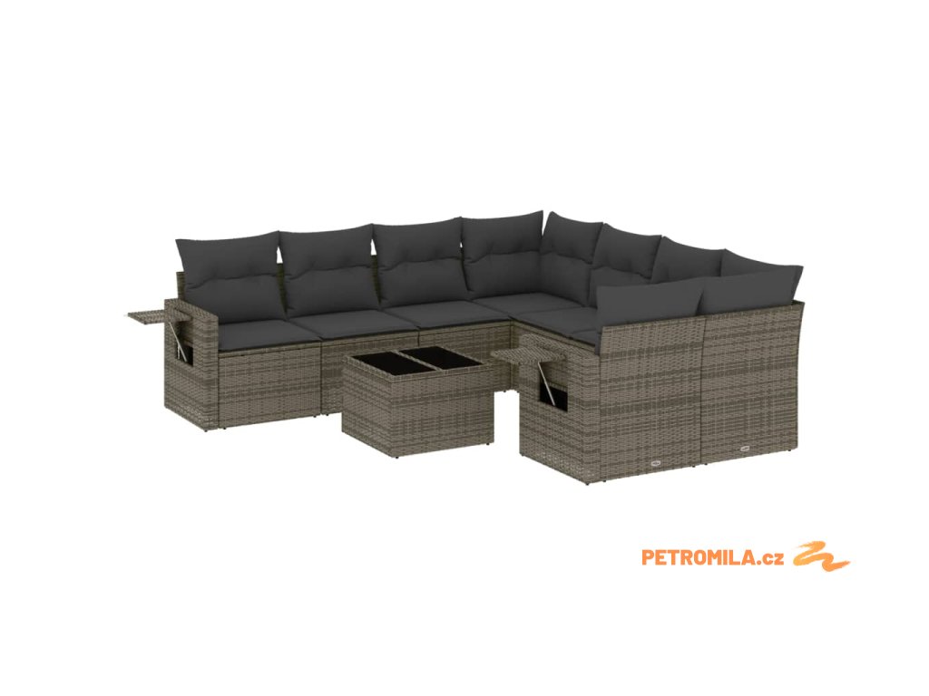 9dílná zahradní sedací souprava s poduškami šedá polyratan
