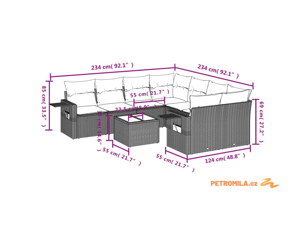 Sada zahradních pohovek s polštářem 9 pcs Béžová Poly ratan