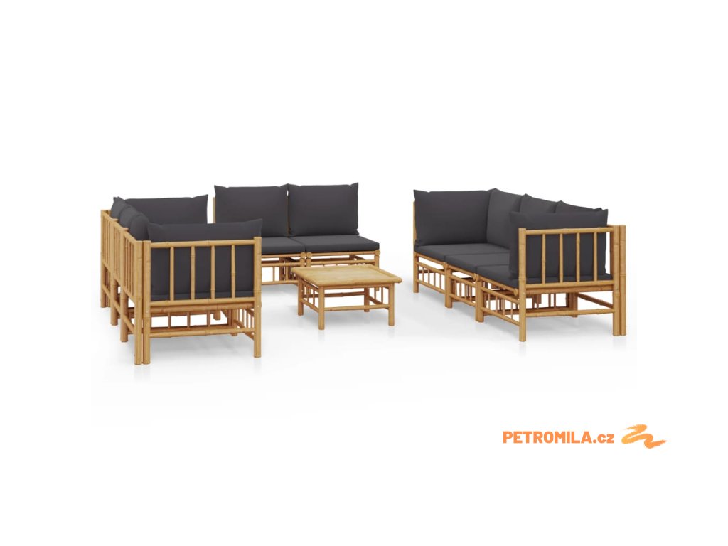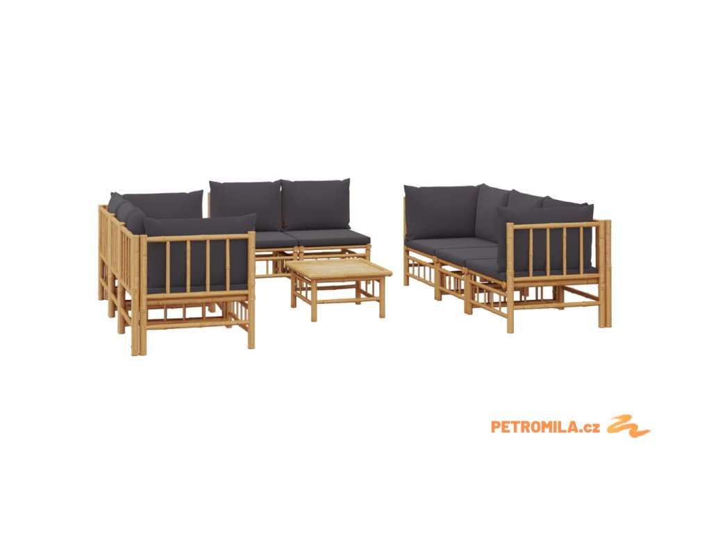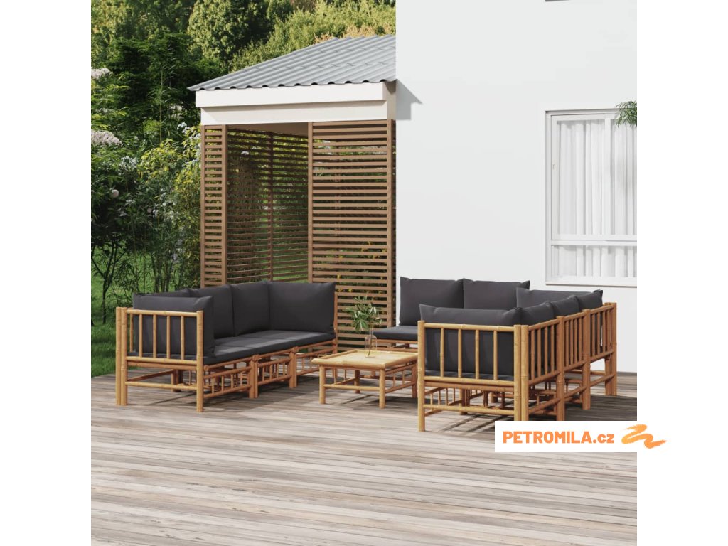 9dílná zahradní sedací souprava s tmavě šedými poduškami bambus