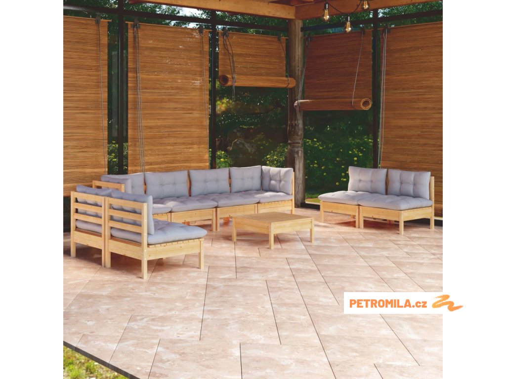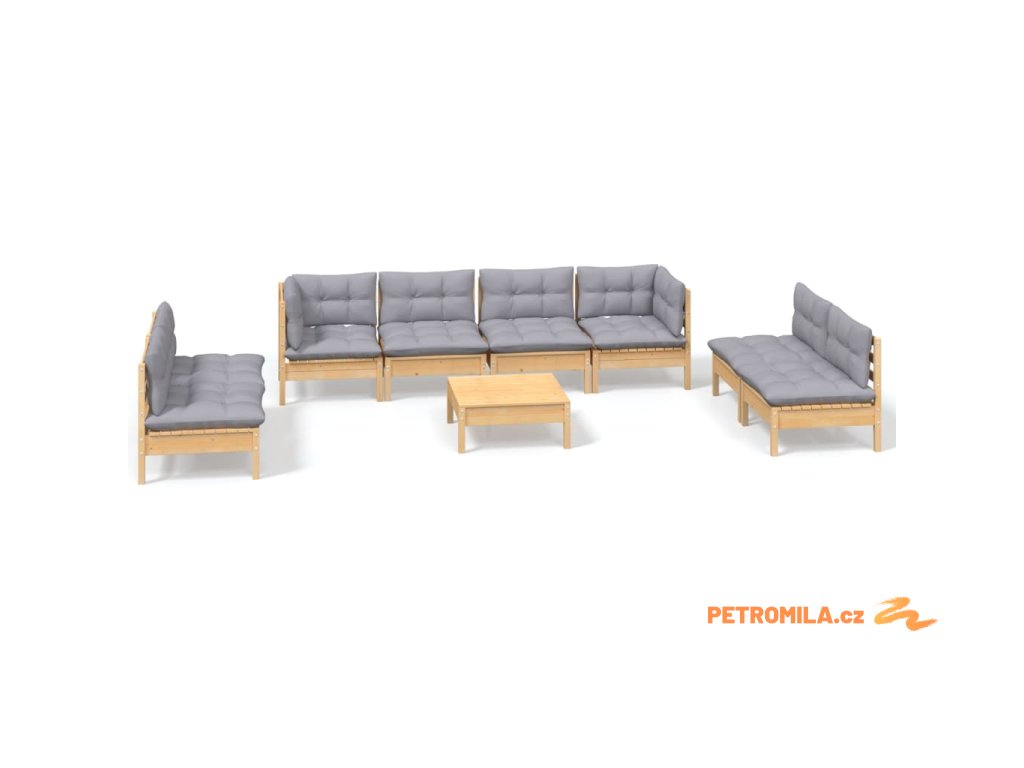 9dílná zahradní sedací souprava šedé podušky masivní borovice