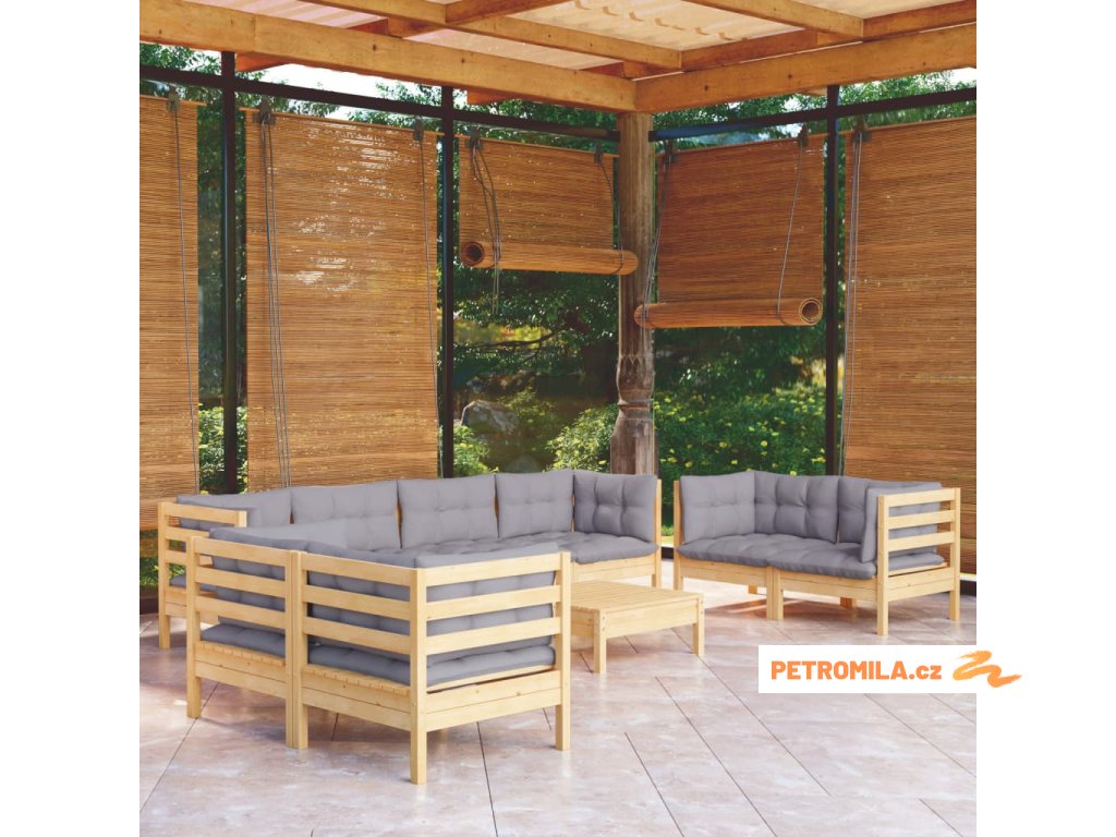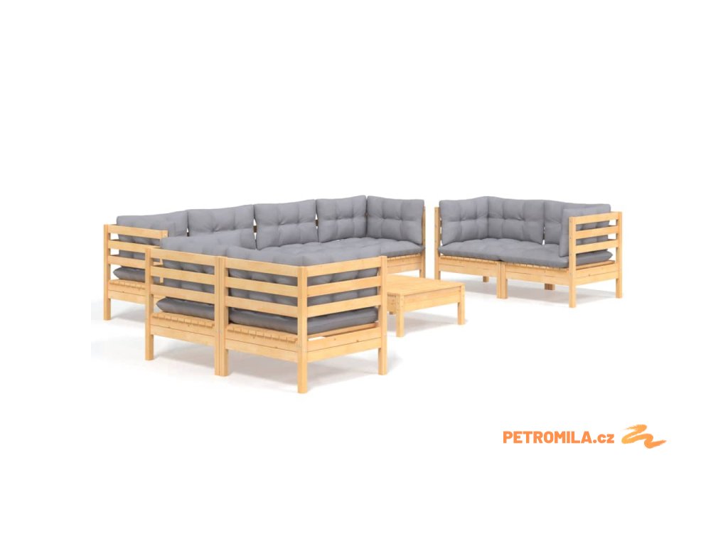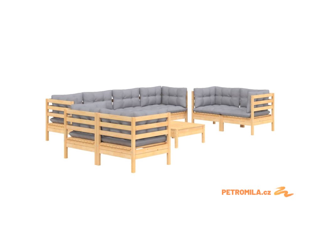 9dílná zahradní sedací souprava šedé podušky masivní borovice