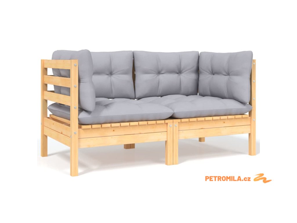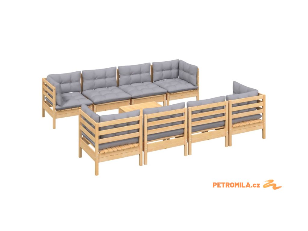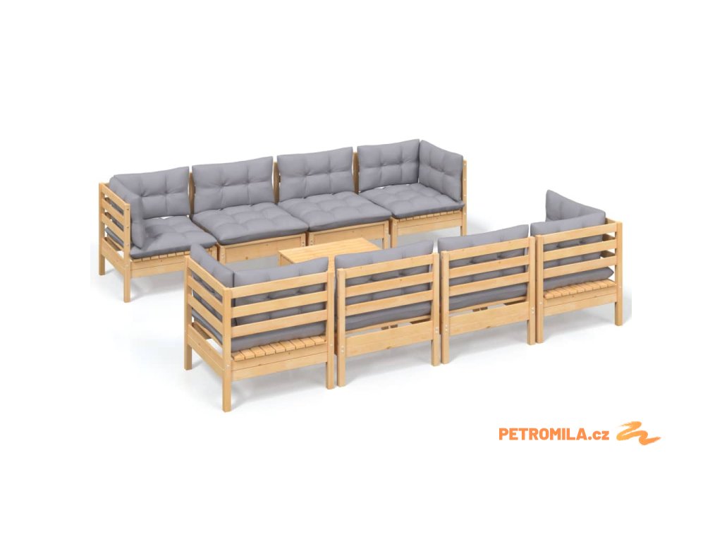 9dílná zahradní sedací souprava šedé podušky masivní borovice
