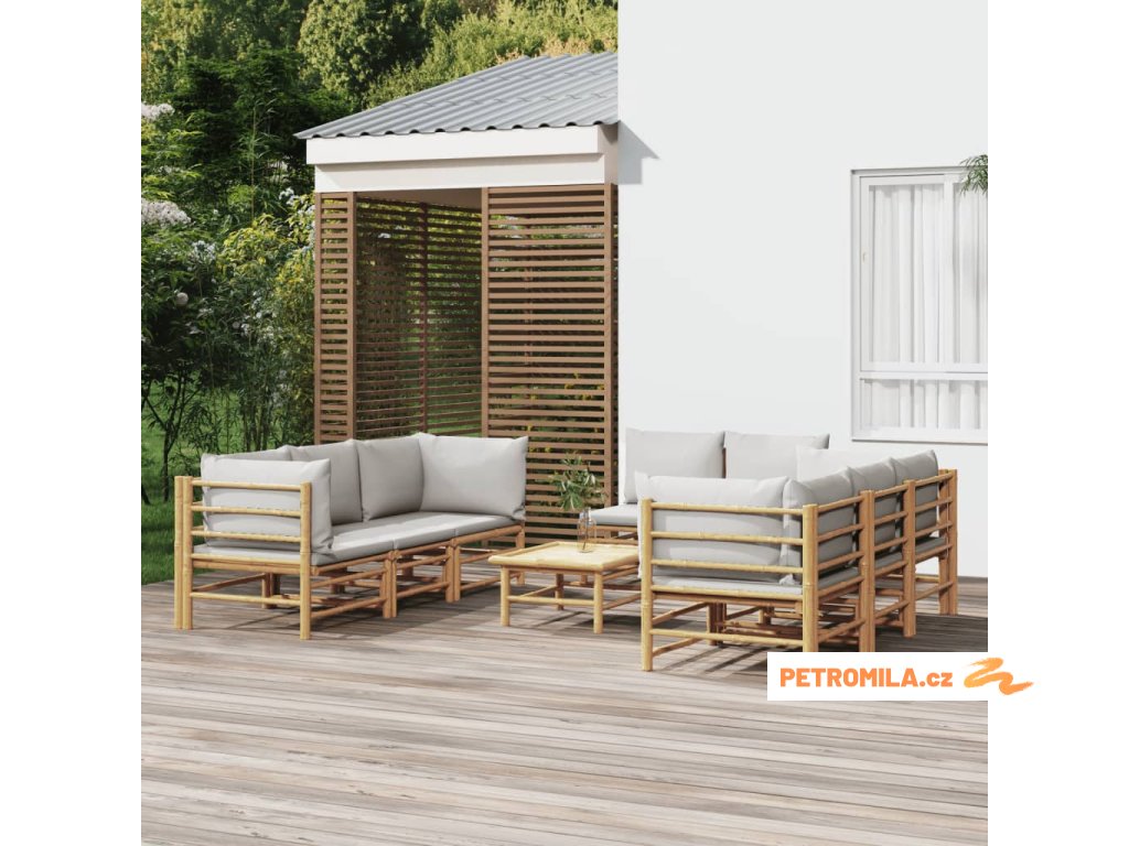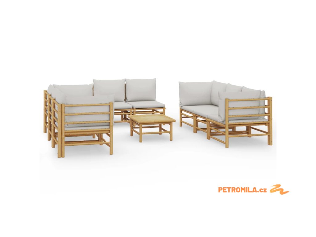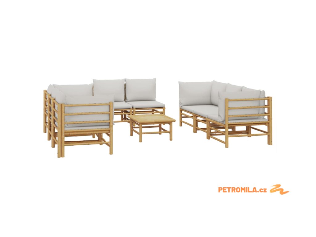9dílná zahradní sedací souprava světle šedé podušky bambus