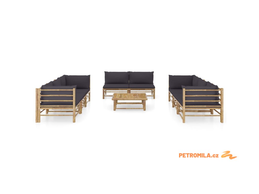 9dílná zahradní sedací souprava + tmavě šedé podušky bambus