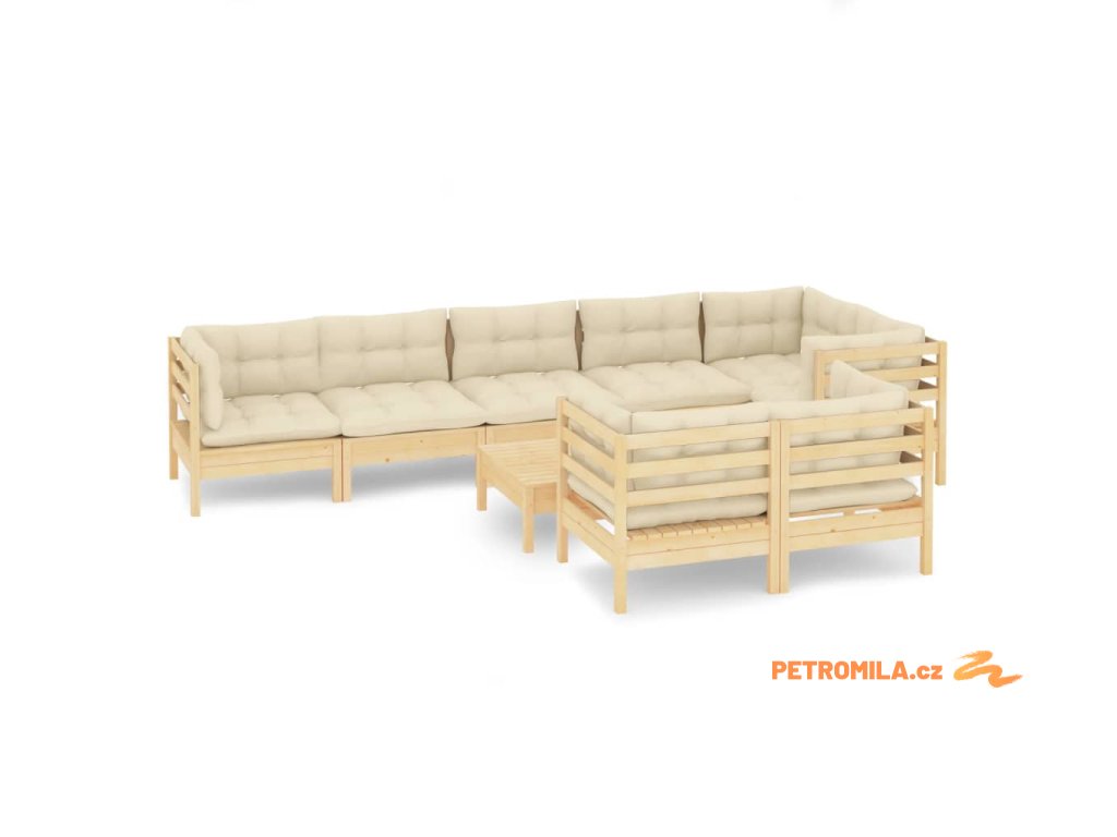 9dílná zahradní souprava krémové podušky masivní borovice