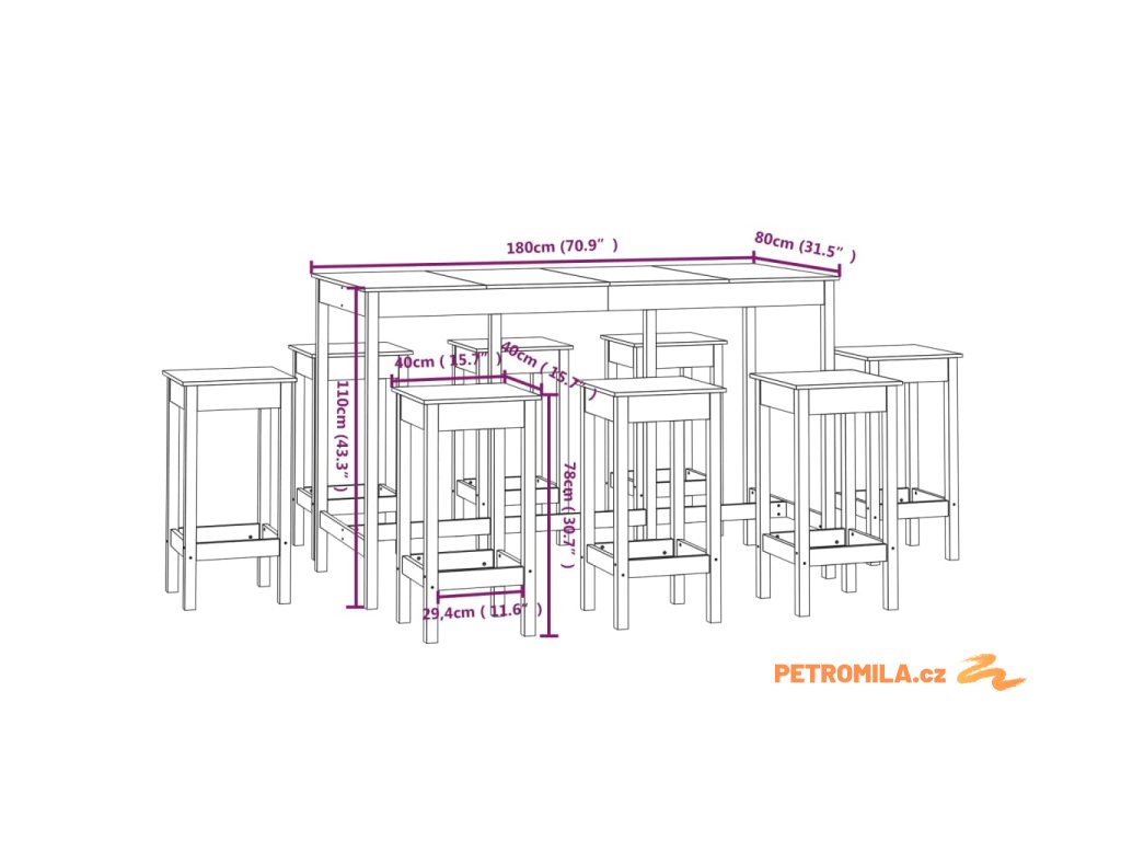 - Rozměry barového stolu: 180 x 80 x 110 cm (Š x H x V)