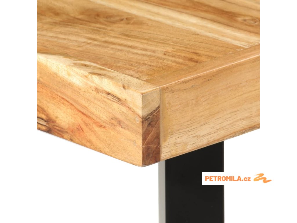 Barový stůl je vyrobený z masivního akáciového dřeva, které je odolné, stabilní a snadno se čistí. Stůl je celý ručně vyrobený a překrásná kresba dřeva dává každému kusu nábytku jeho jedinečný a od ostatních lehce odlišný charakter. Silné ocelové nohy přidávají stolu na stabilitě a odolnosti a navíc umocňují jeho působivý industriální styl.