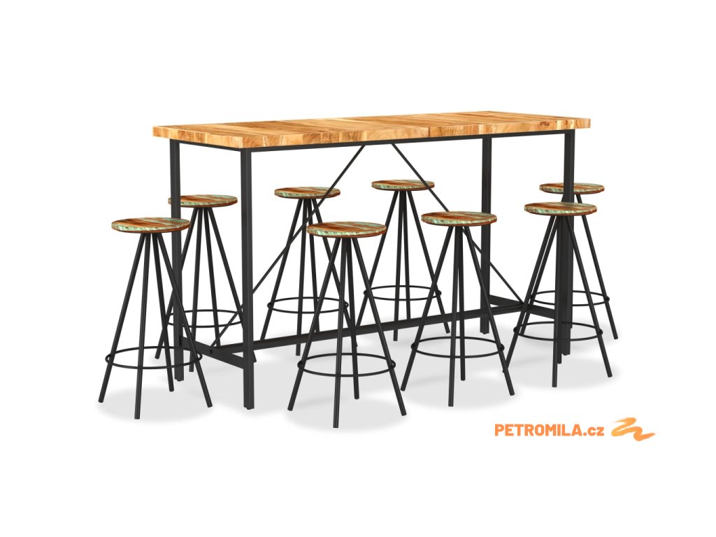 9dílný barový set masivní akácie a masivní recyklované dřevo