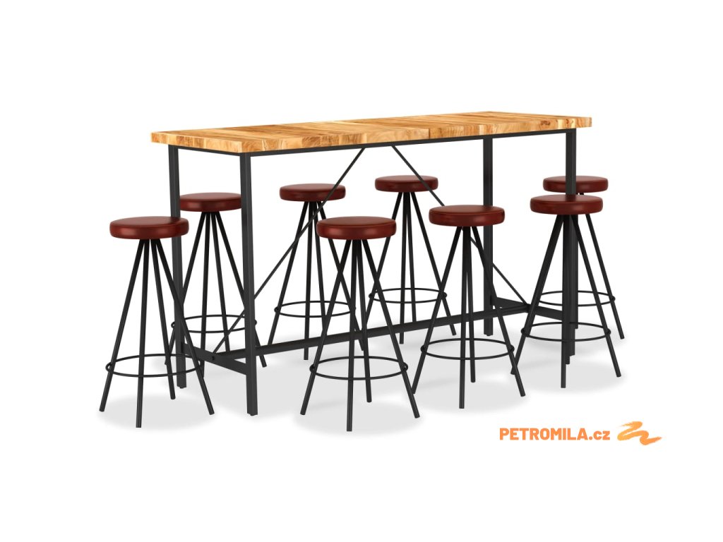9dílný barový set masivní akáciové dřevo a pravá kůže