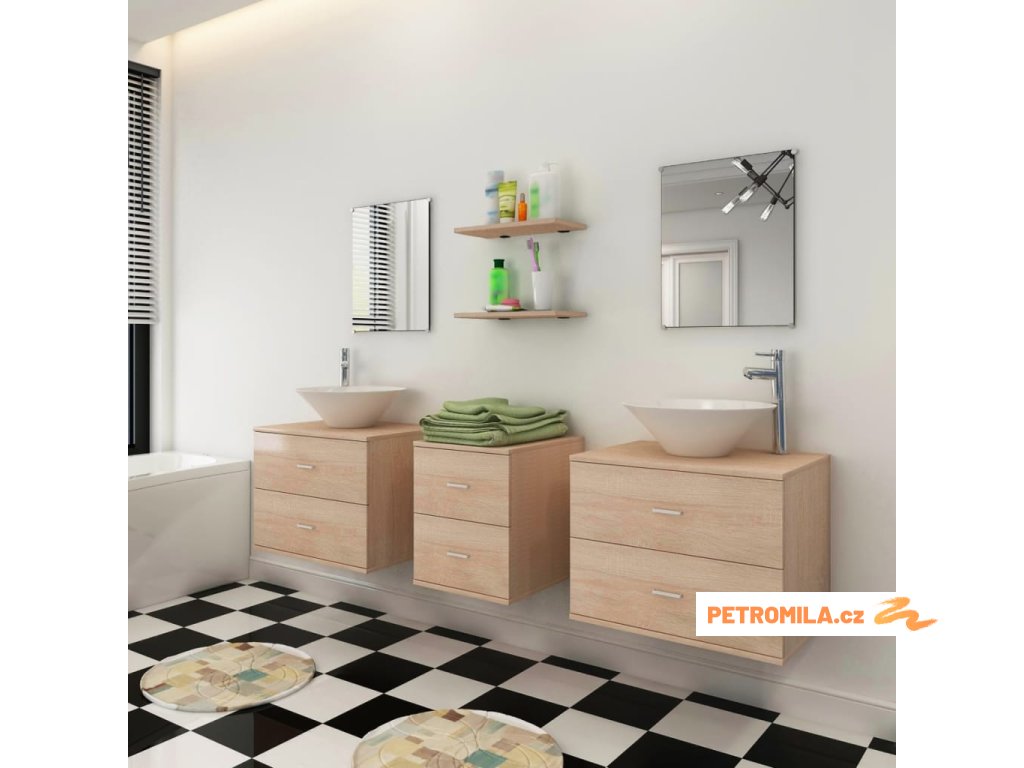 9dílný set koupelnového nábytku s umyvadlem a baterií béžový