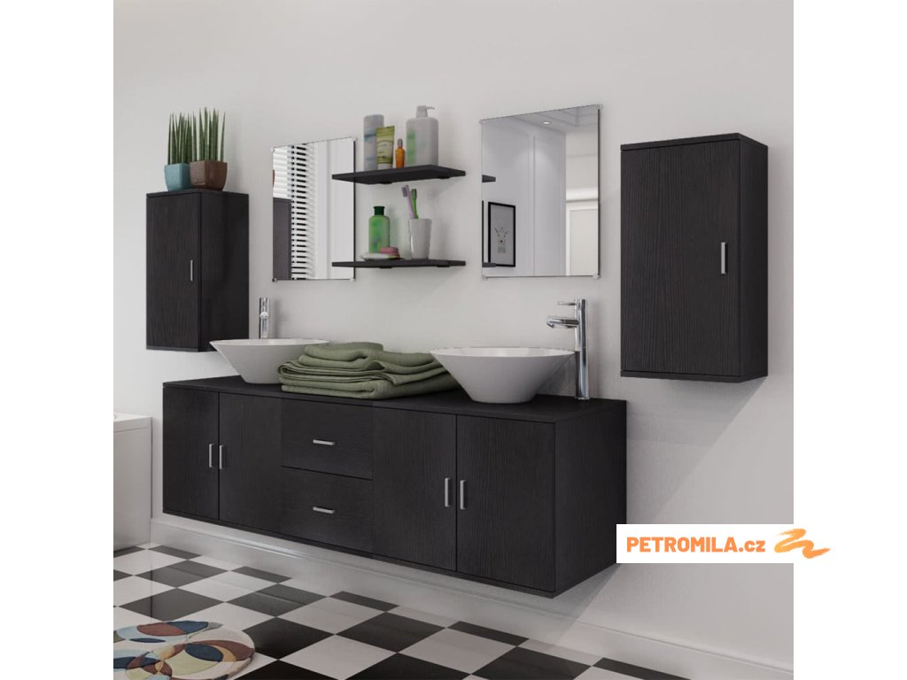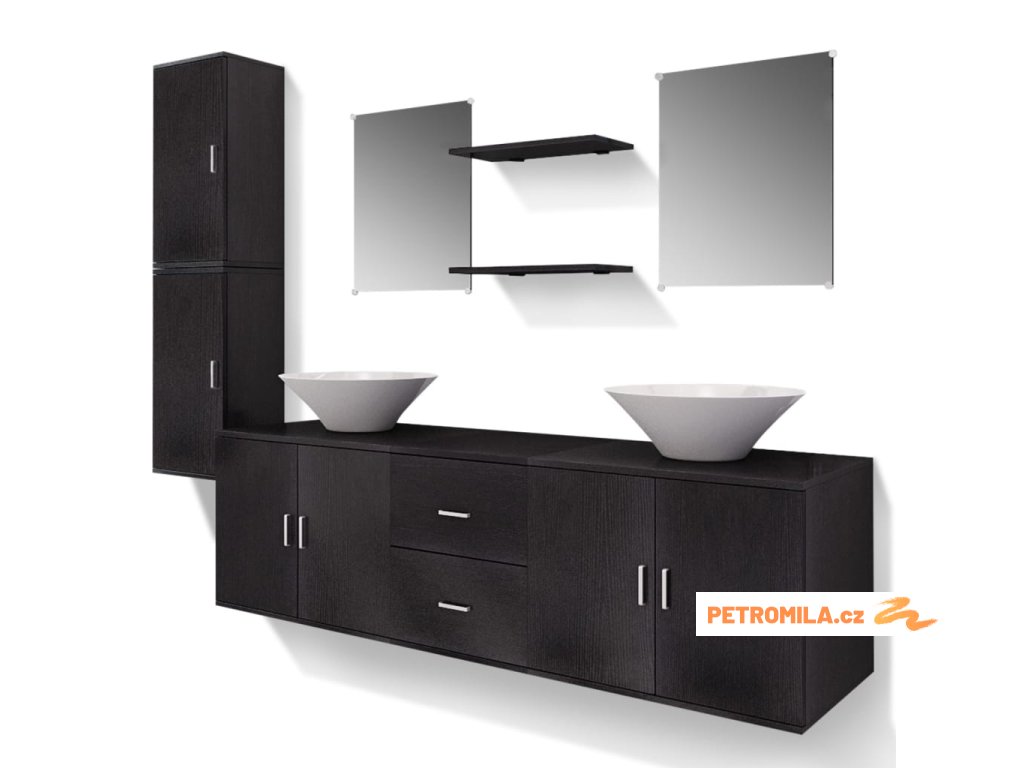 Tento kompletní set, sestávající z 1 nástěnné skříňky pod umyvadlo, 2 nástěnných skříněk, 2 zrcadel, 2 polic a 2 umyvadel, je skvělá volba pro vaši koupelnu. Optimalizuje dostupný prostor, aniž byste museli slevovat ze stylu.