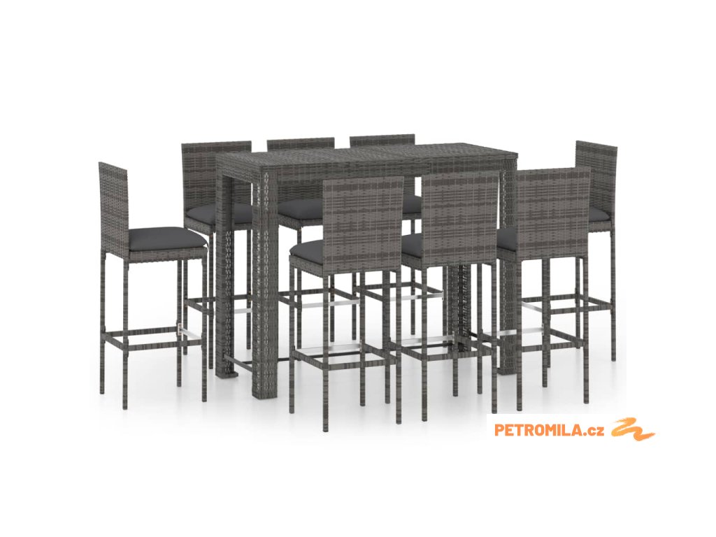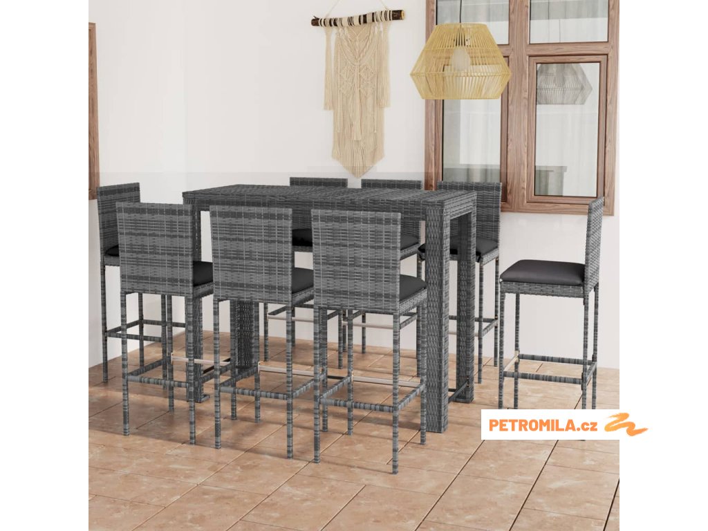 9dílný venkovní barový set s antracitovými poduškami polyratan