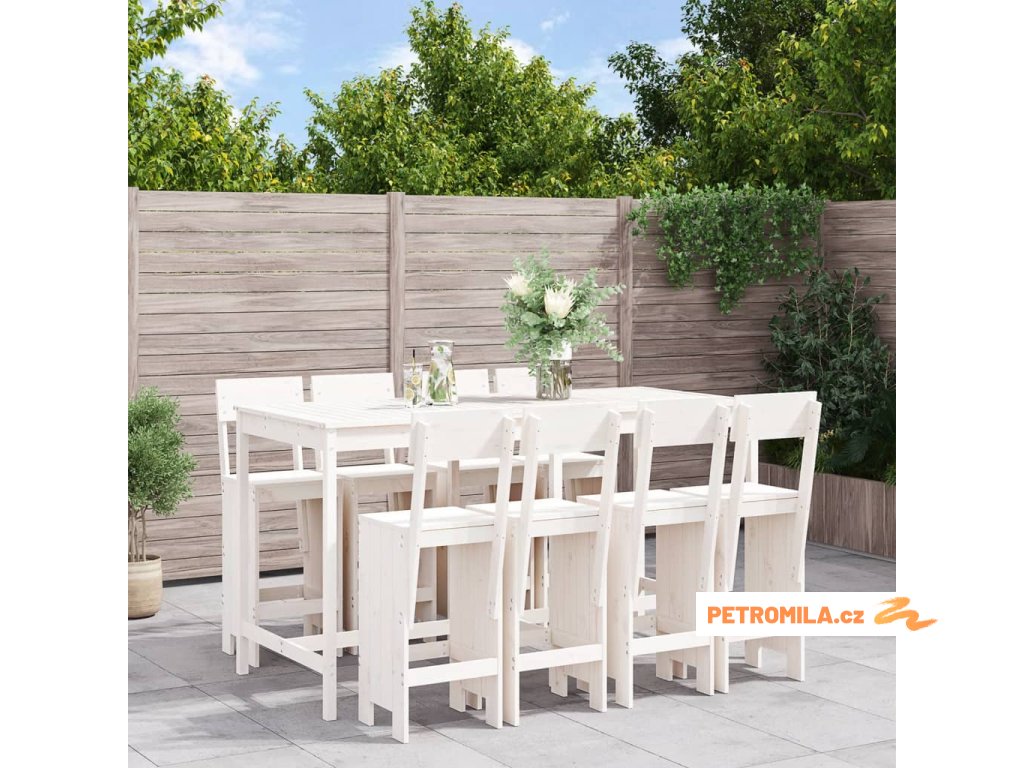 9dílný zahradní barový set bílý masivní borové dřevo