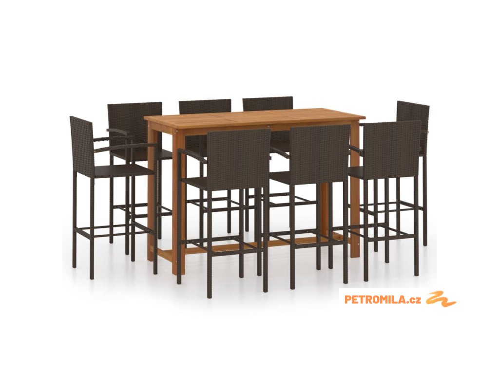 9dílný zahradní barový set hnědý