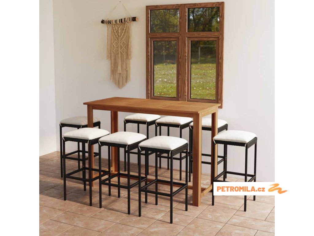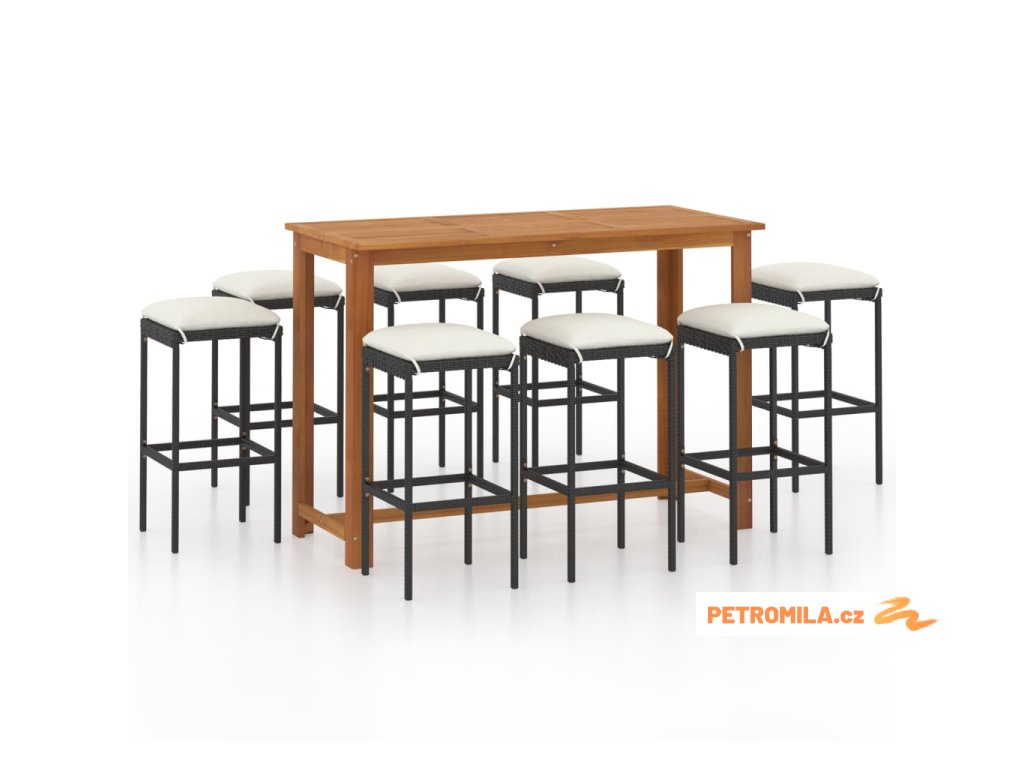 9dílný zahradní barový set s poduškami černý