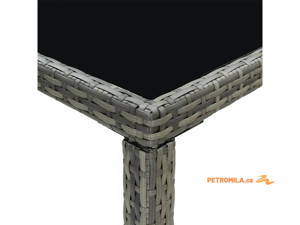 - Materiál: PE ratan, práškově lakovaná ocel, tvrzené sklo