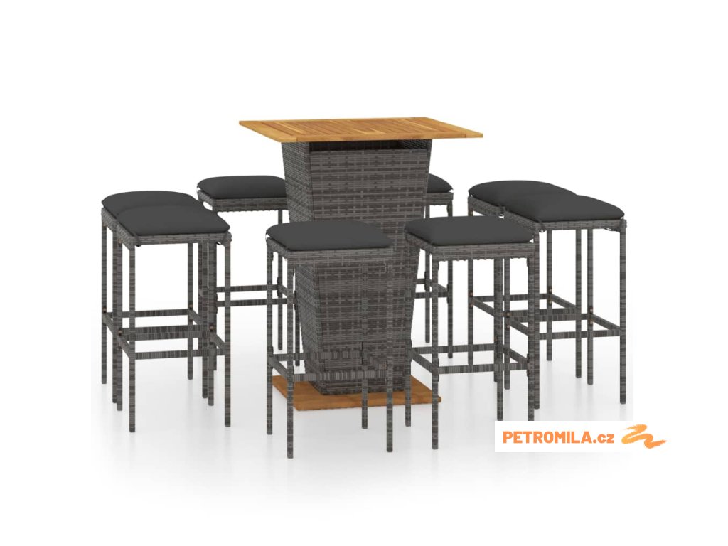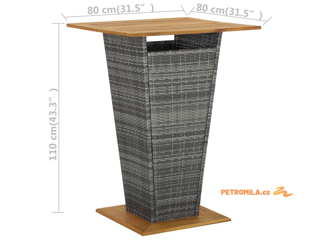 - Materiál: PE ratan, práškově lakovaná ocel, masivní akáciové dřevo s olejovaným povrchem