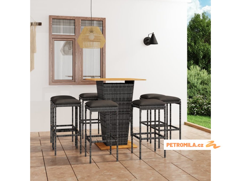 Vysoký stůl má rám z práškově lakované oceli opletený PE ratanem, a vydrží tak celé roky venkovního používání. Stolní deska a základna z masivního akáciového dřeva mu přidávají na robustnosti a stabilitě. Stoličky mají bytelnou konstrukci z oceli a PE ratanu odolného proti povětrnostním vlivům. Jsou stabilní a dají se snadno přemisťovat. Poduška a podnožka se postarají o to, aby se vám na židli pohodlně sedělo.