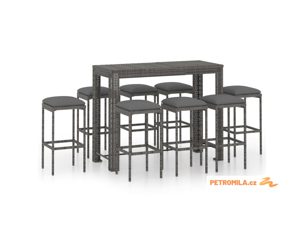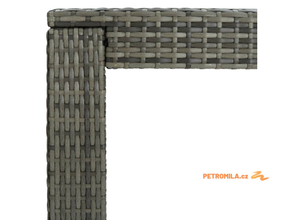 Barový stůl je zpevněný ocelovým rámem s práškovým nástřikem, takže je stabilní a bytelný. Deska stolu je ideální pro servírování nápojů, jídla nebo k vystavení dekorativních předmětů. Stoličky mají pevnou ocelovou konstrukci a jsou vyrobené z klimaticky odolného PE ratanu, který je zárukou stability a umožňuje snadné přenášení. Poduška a opěrka na nohy přispívají k většímu pohodlí při sezení na stoličce. Polyesterový potah na podušky se skrytým zipem usnadňuje čištění.