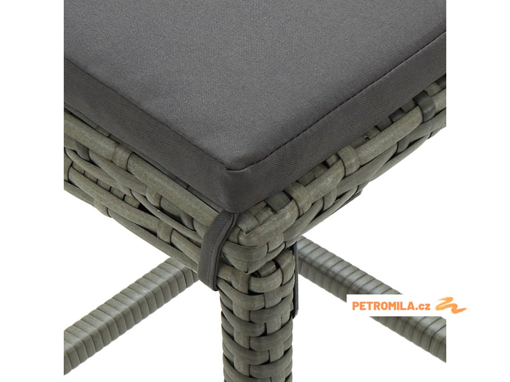 - Materiál: PE ratan, práškově lakovaná ocel, textil (100% polyester)