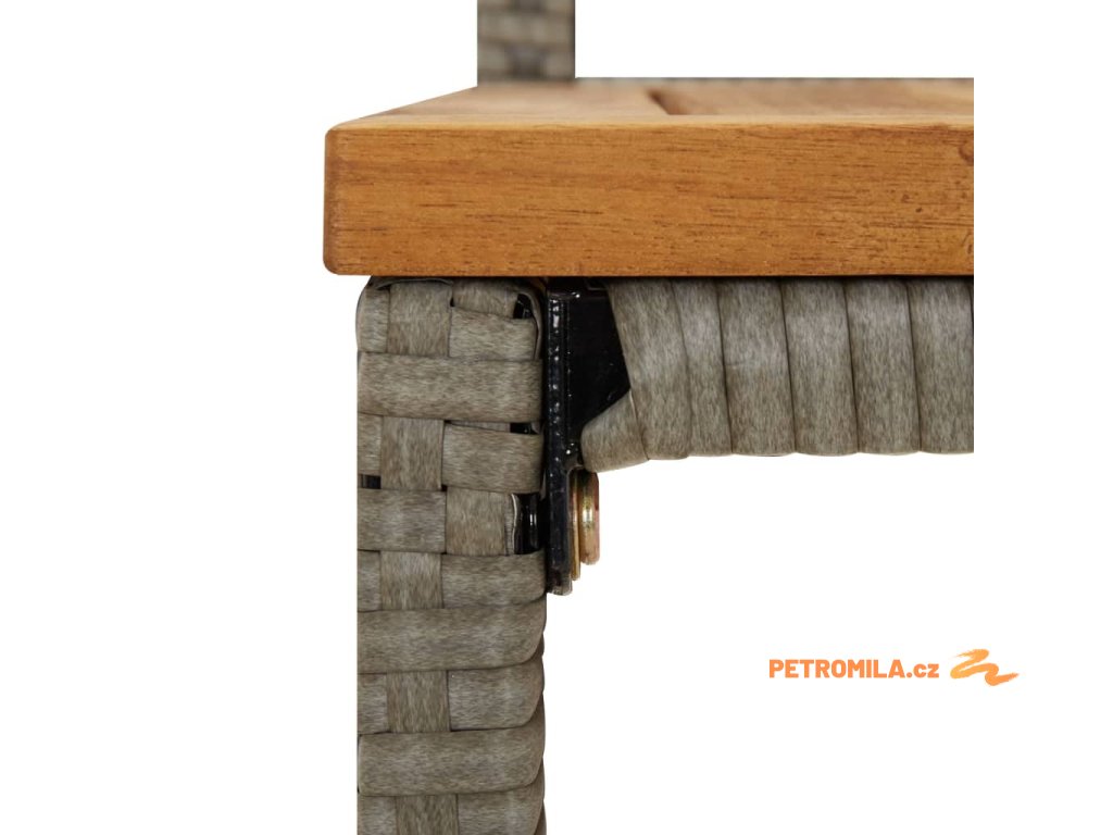 - Materiál: PE ratan, práškově lakovaná ocel, masivní akáciové dřevo s přírodní povrchovou úpravou