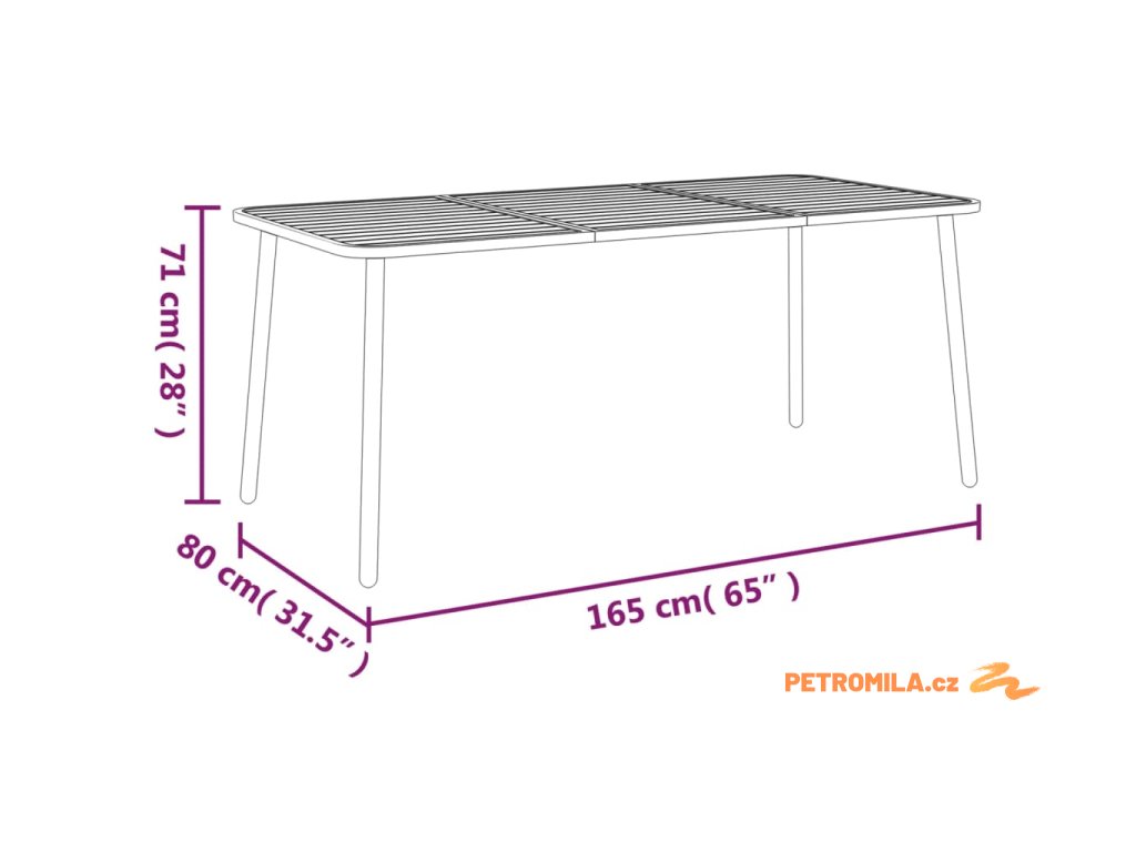 - Rozměry: 165 x 80 x 71 cm (D x Š x V)