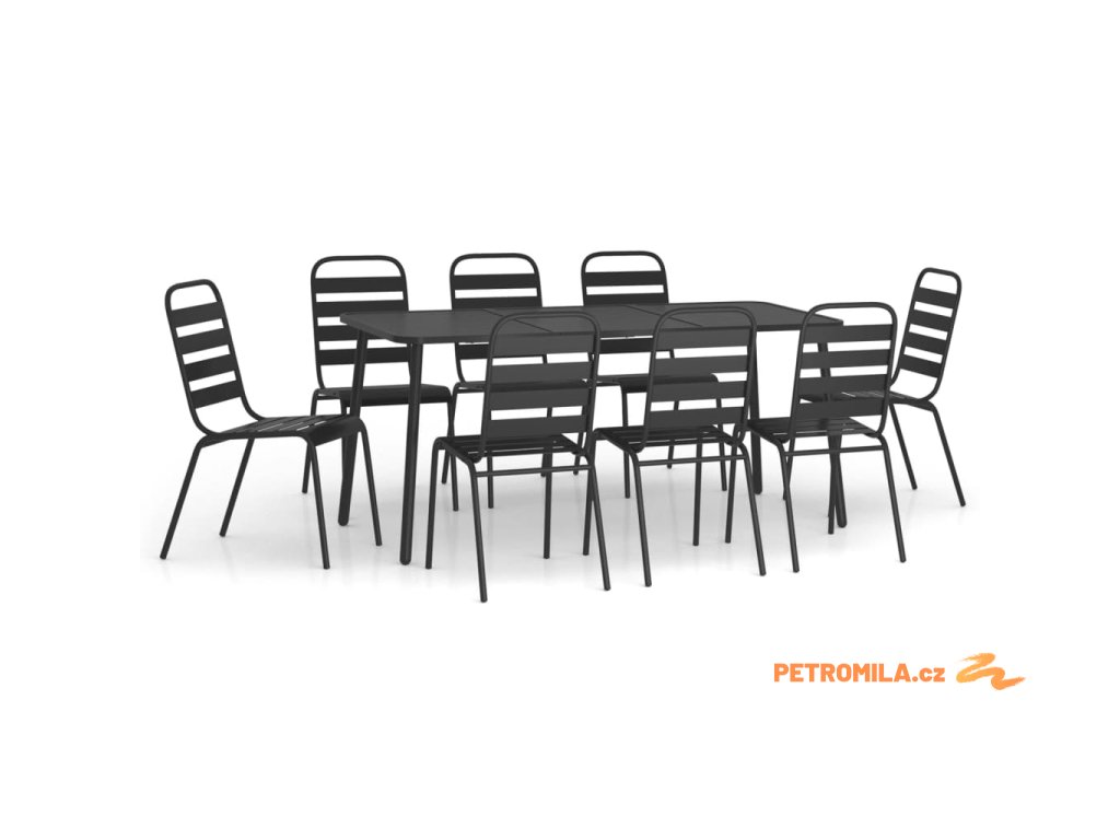 9dílný zahradní jídelní set antracitový ocel