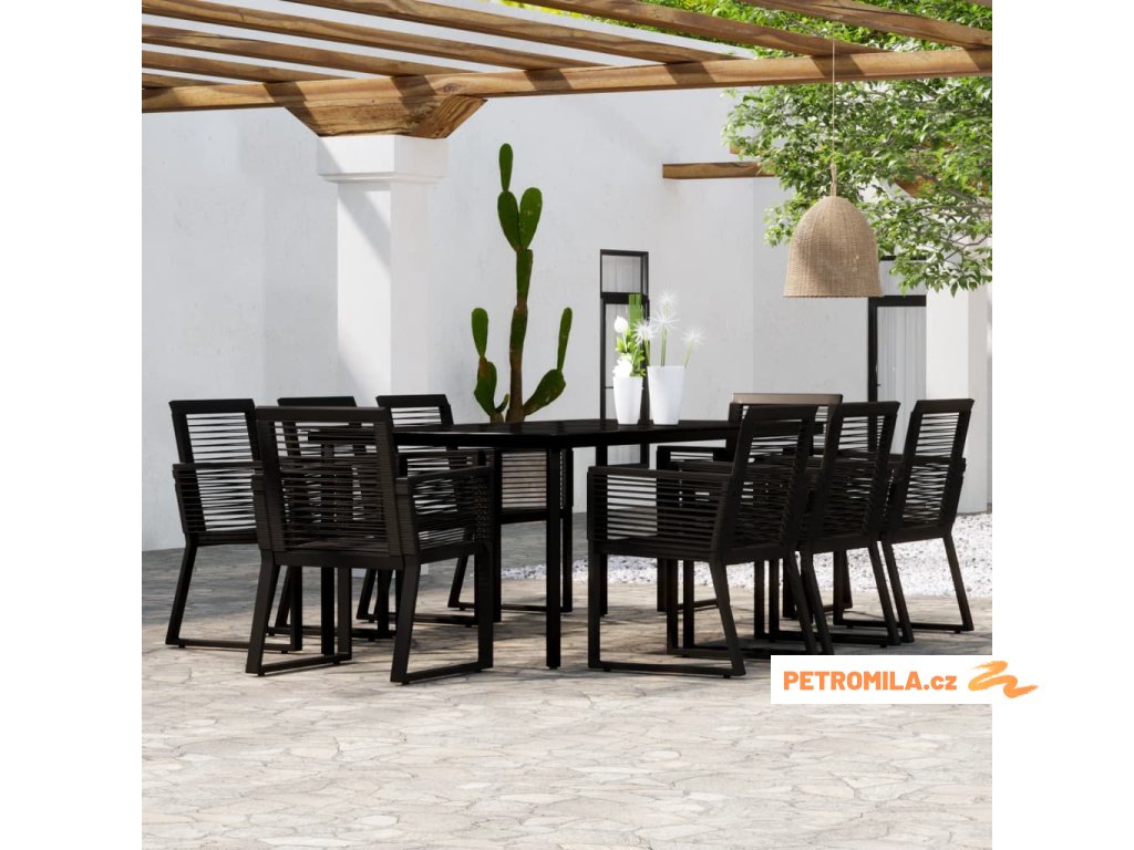 9dílný zahradní jídelní set černý