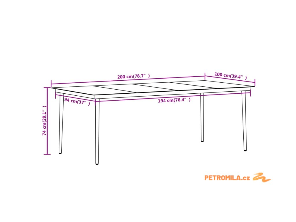 - Rozměry: 200 x 100 x 74 cm (D x Š x V)
