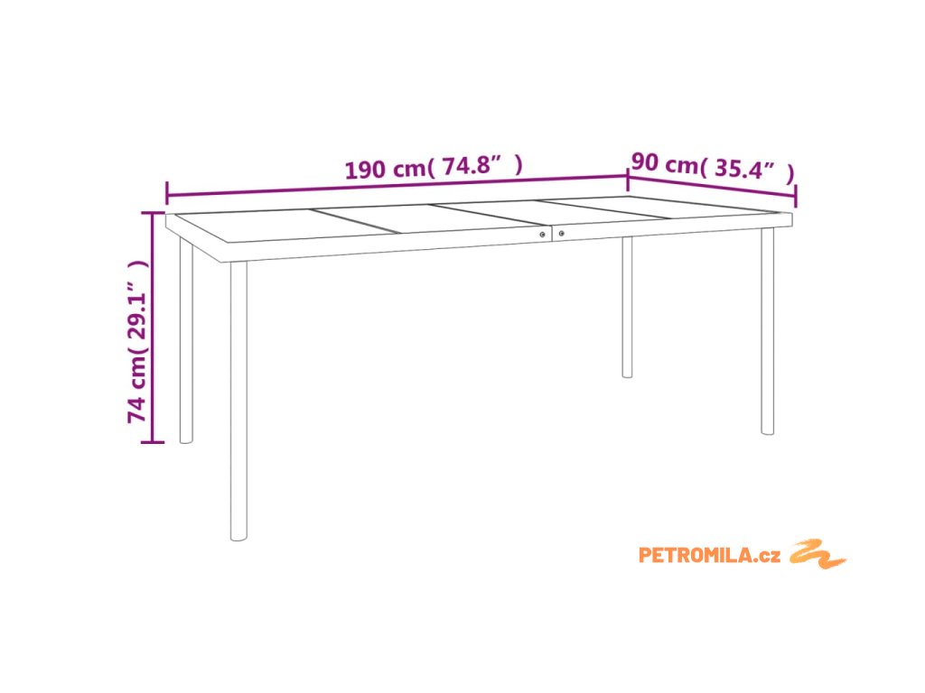 - Rozměry: 190 x 90 x 74 cm (D x Š x V)