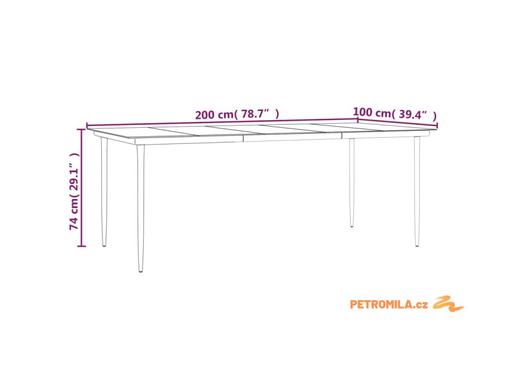 - Rozměry: 200 x 100 x 74 cm (D x Š x V)