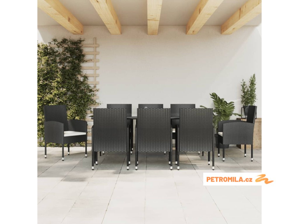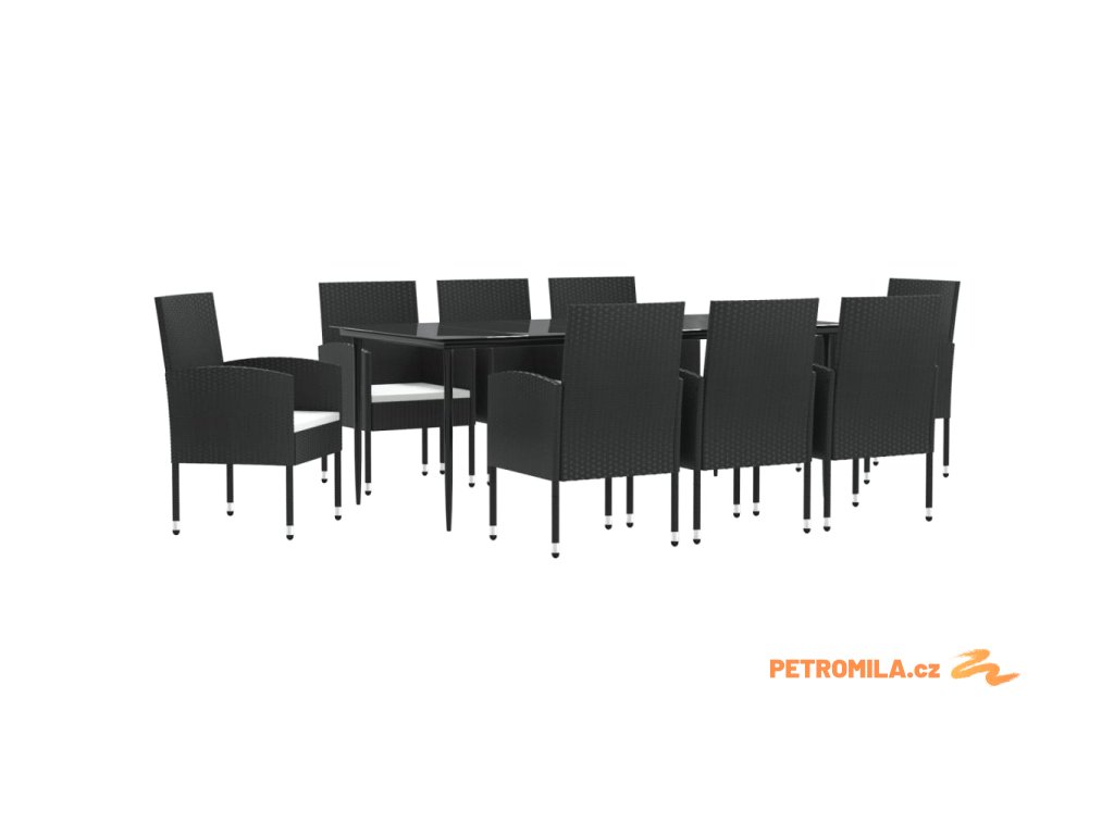 11dílná zahradní sedací souprava s poduškami černá polyratan