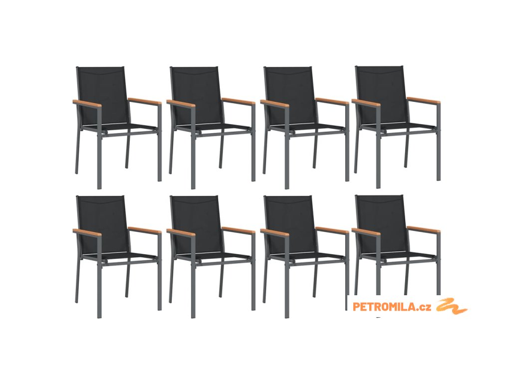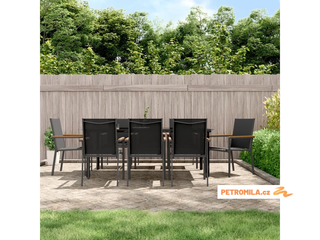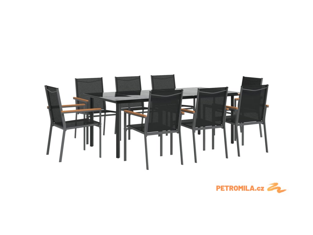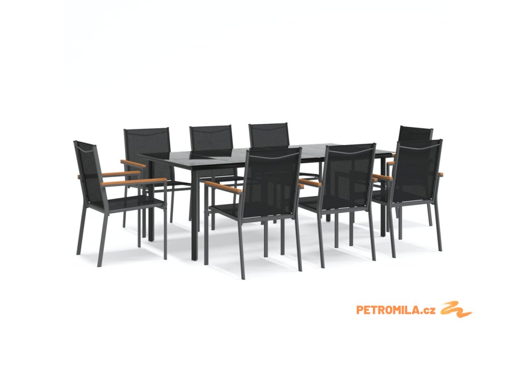 9dílný zahradní jídelní set černý textilen a ocel
