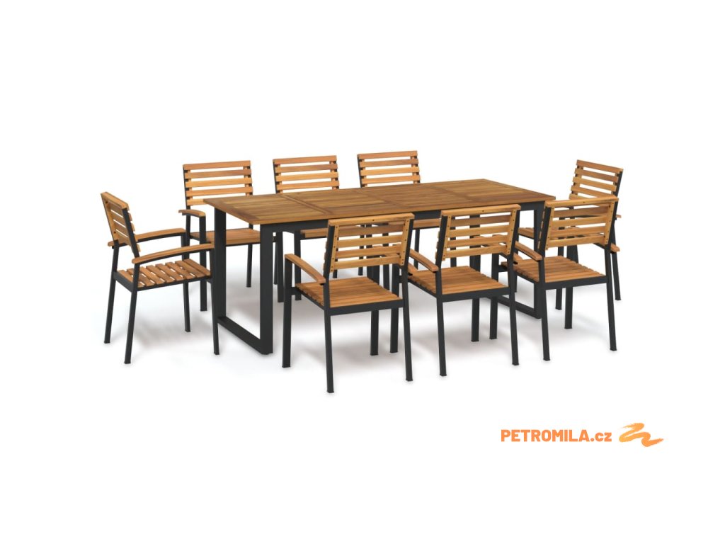 9dílný zahradní jídelní set masivní akáciové dřevo a kov