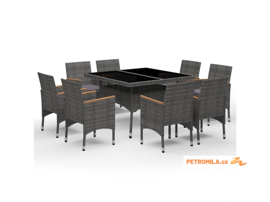9dílný zahradní jídelní set polyratan a akáciové dřevo šedý