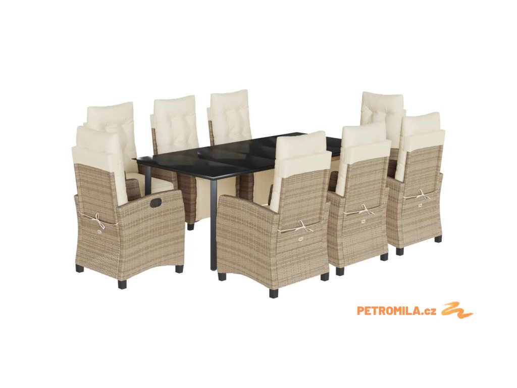 9dílný zahradní jídelní set s poduškami béžový polyratan