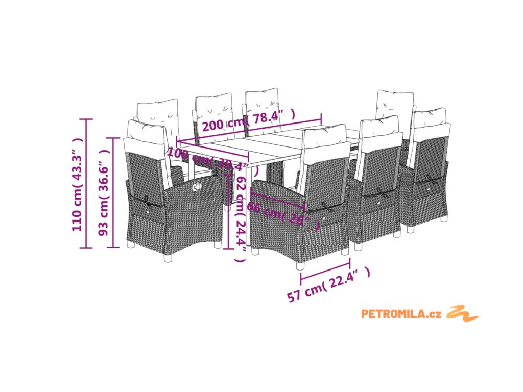 - Rozměry při poloze vsedě: 57 x 66 x 93 cm (Š x H x V)