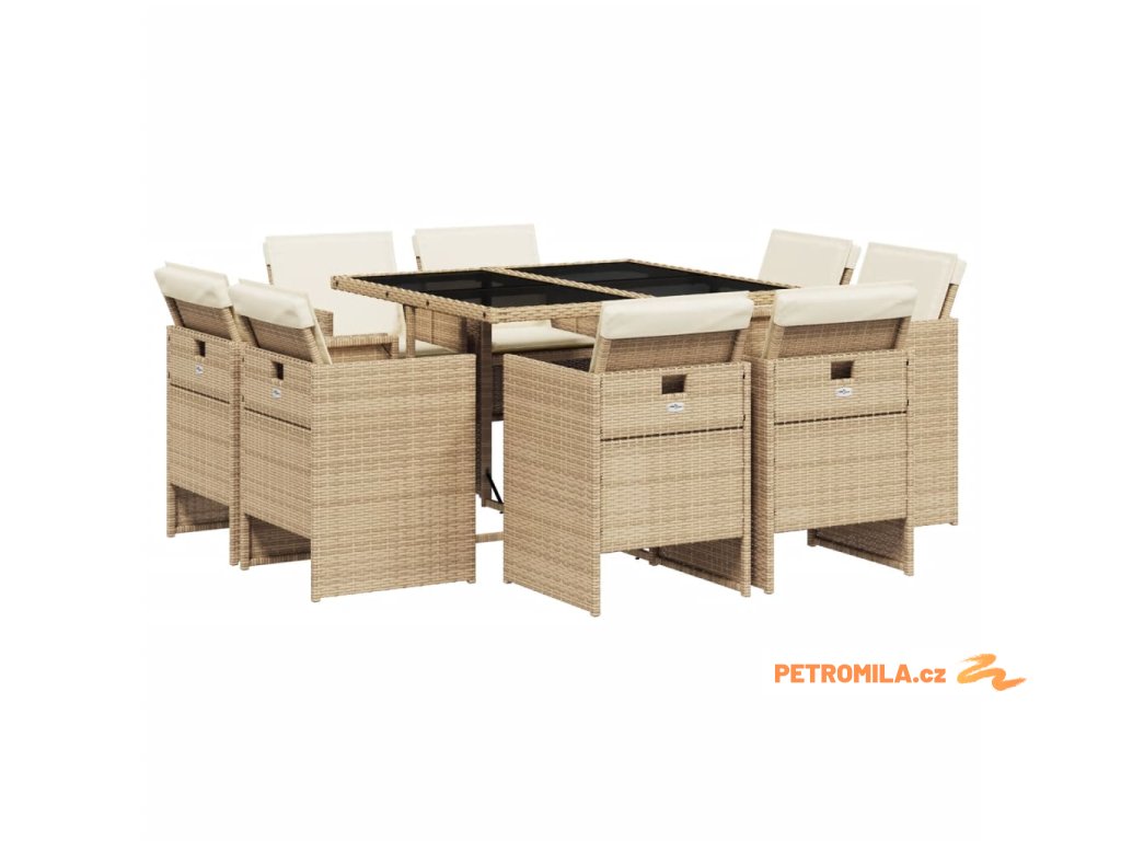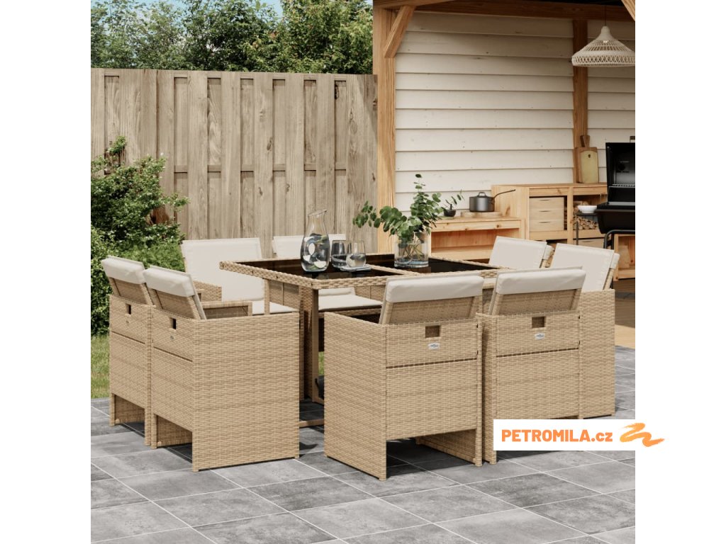 9dílný zahradní jídelní set s poduškami béžový polyratan