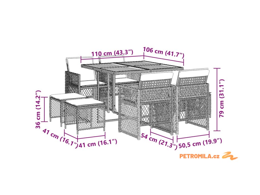 - Rozměry: 110 x 106 x 73 cm (D x Š x V)